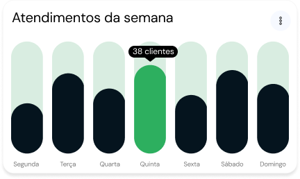 Seu negócio no controle, sem complicação: Acompanhe atendimentos do dia, serviços mais vendidos e fluxo básico do negócio, tudo em uma interface leve e intuitiva.